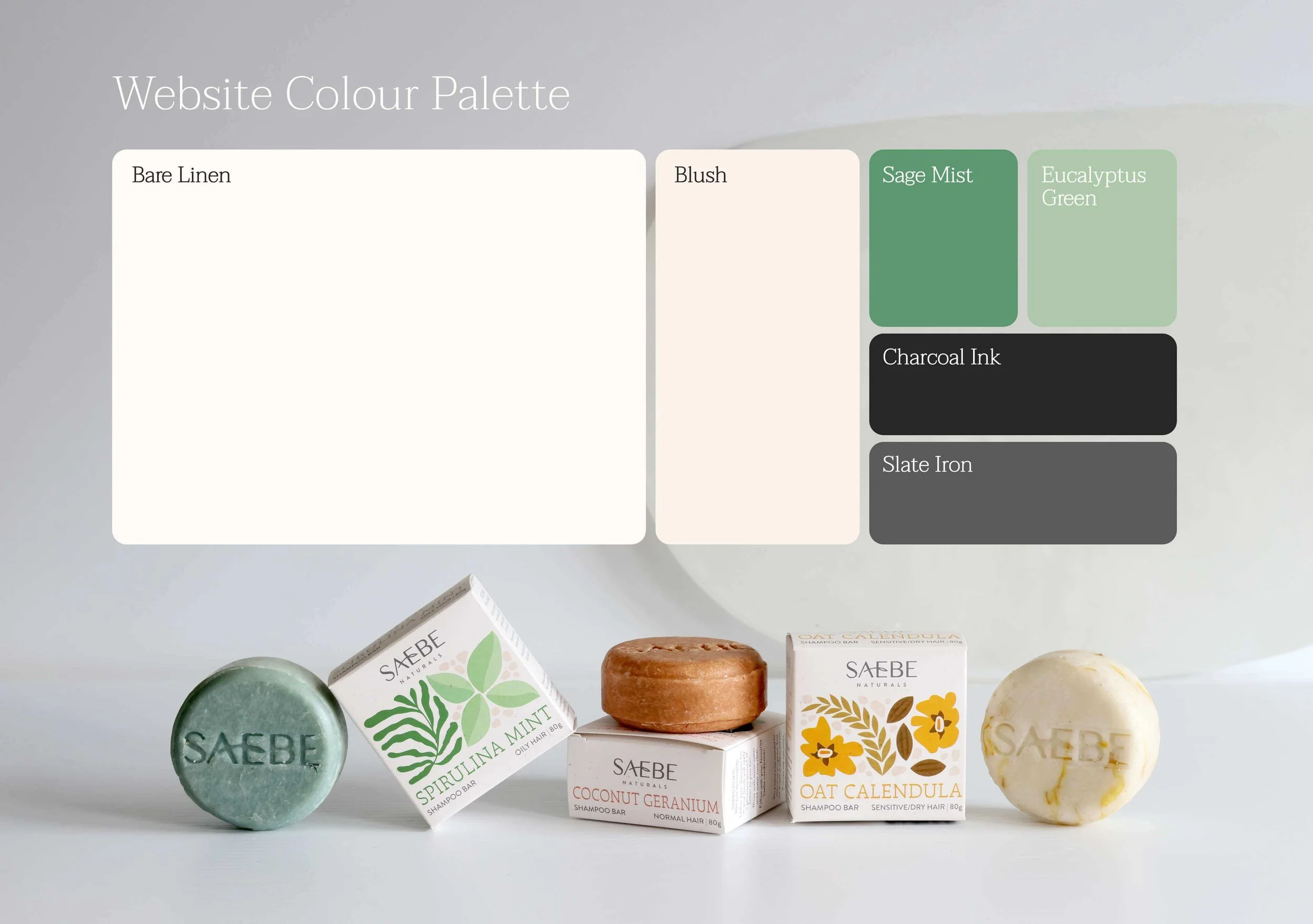 Finally, we brought their story to life through a custom Shopify website that creates a beautiful online home - one that not only reflects and uplifts Saebe’s brand ethos, but also proudly showcases their thoughtful packaging design. We curated a digital experience that balances form and function: selecting a typographic system that complements their packaging fonts while ensuring clarity and legibility online, and extending their earthy, Australian-inspired colour palette to bring warmth and cohesion across every page.